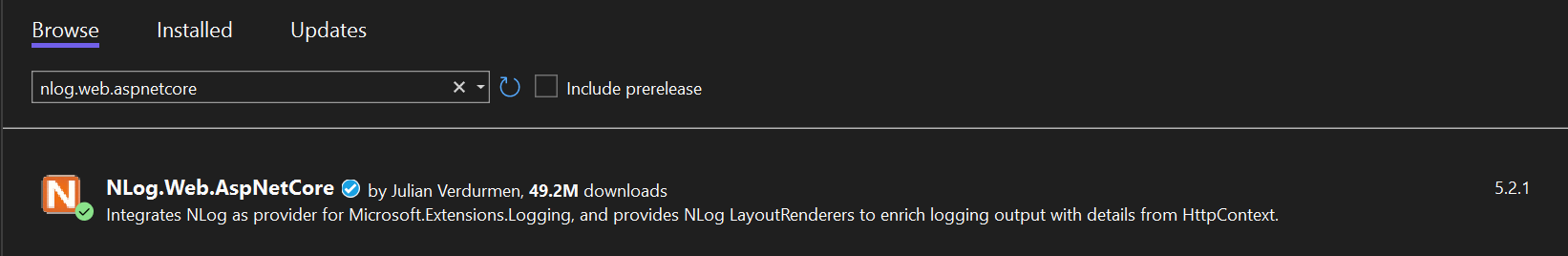 <PackageReference Include="NLog.Web.AspNetCore" Version="5.2.1" />