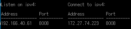 netsh interface portproxy add v4tov4 listenport=8008 listenaddress=192.166.40.61 connectport=8008 connectaddress=172.27.74.223