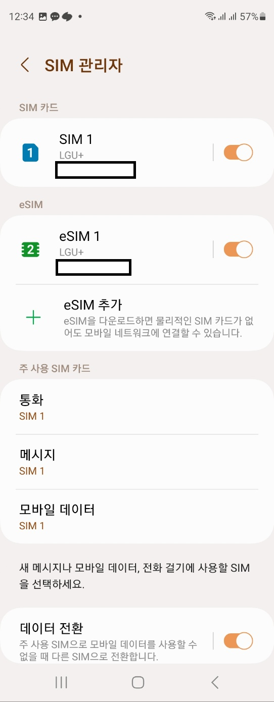 일단 회사번호 USIM을 꽂아두고 내 개인폰 번호를 eSIM으로 번호이동하기위해