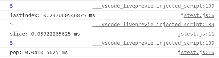 보통 length를 이용한 마지막 element의 index를 직접 지정해서 값을 가져오는 방법을 많이 사용할텐데 위 performance 차이가 많이 나기 때문에 pop을 이용하는 것이 가장 좋을 듯 합니다.