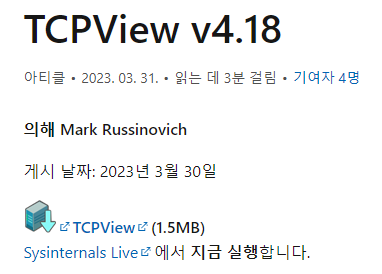 다운로드: https://learn.microsoft.com/ko-kr/sysinternals/downloads/tcpview