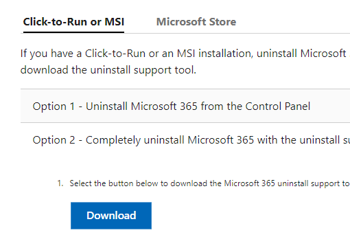 Microsoft 원문 링크 : https://support.microsoft.com/en-us/office/uninstall-office-from-a-pc-9dd49b83-264a-477a-8fcc-2fdf5dbf61d8?ui=en-us&rs=en-us&ad=us