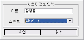 이름과 팀 설정 후 확인을 누르면 자동으로 서버 프로그램에 접속한 다음 시스템 트레이에 아이콘화 된다.