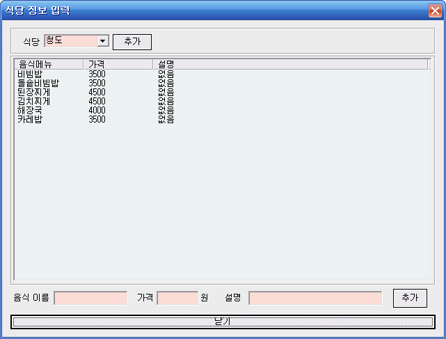 * 식당의 추가나 해당 식당의 식사 정보를 추가 할 수 있다.