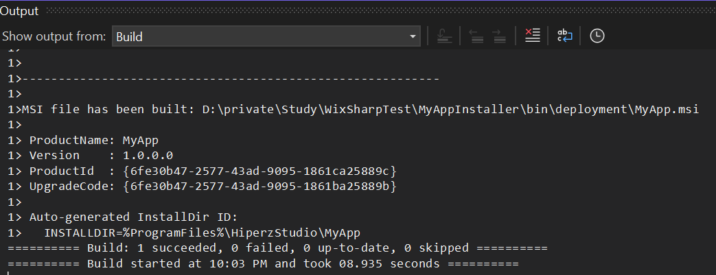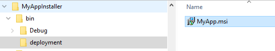 이제 MyApp을 빌드하고 MyAppInstaller를 빌드하면 bin\deployment 폴더에 msi 파일이 생성 됩니다.