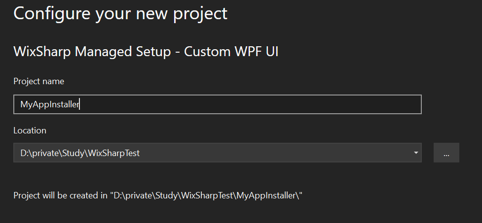 프로젝트 명은 MyAppInstaller로 설정합니다.