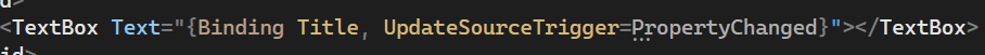 ViewModel의 callback 함수들은 PropertyChanged 이벤트 발생에 의해서만 trigger 되므로 MainWindow View의 TextBox 바인딩 옵션에 Update Trigger 모드를 아래와 같이 PropertyChanged로 변경해줍니다.
